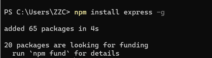 npm install express -g // -g代表全局安装