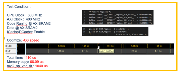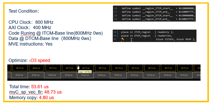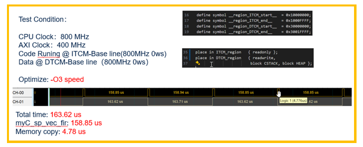从测试结果来看,在其他条件都一致的情况下,代码运行在ITCM/DTCM内,比SRAM中