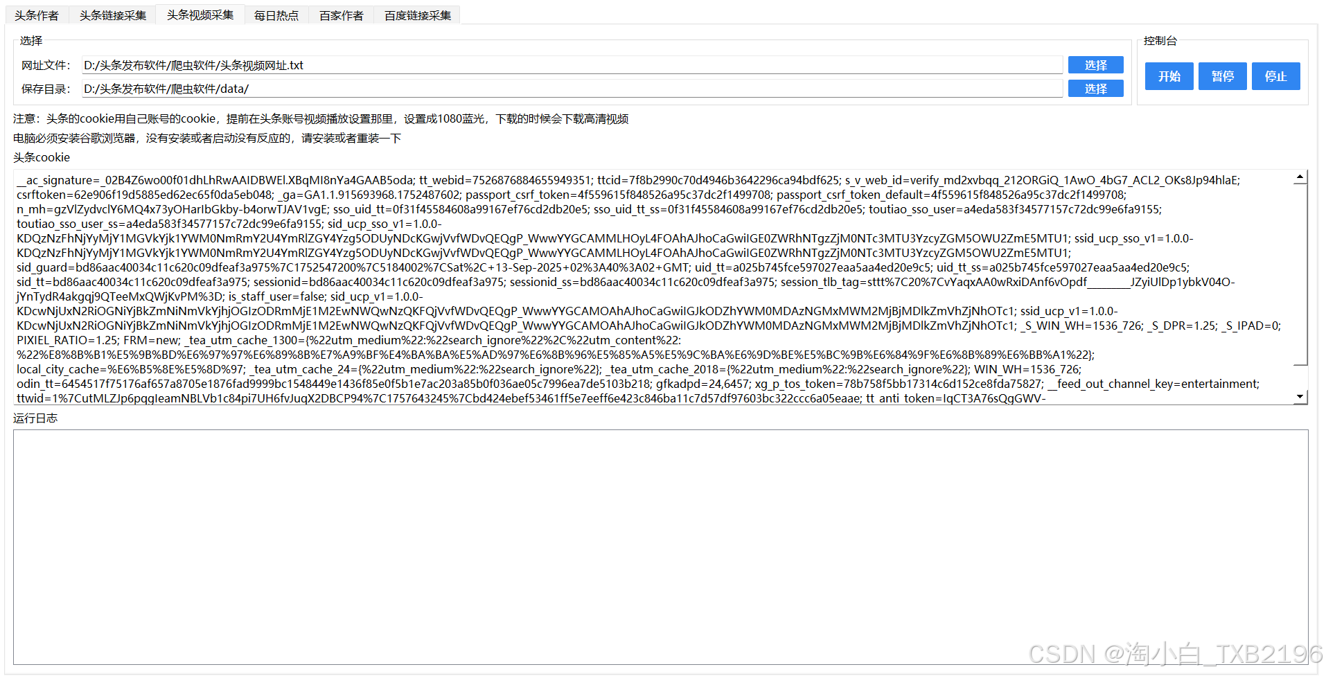 这个功能放到最后,因为不太常用,我们可以从罐头,把热门的头条视频下载到本地,把网址保存到txt,软件调用,软件会驱动浏览器,进行下载,这个不常用,主要是上面的文章采集。