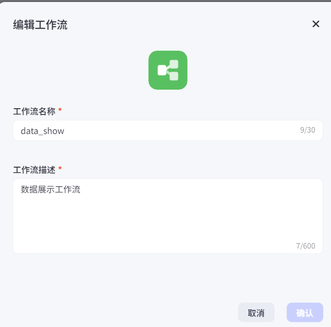 如下,点击创建工作流,在弹窗中填写工作流名称和描述