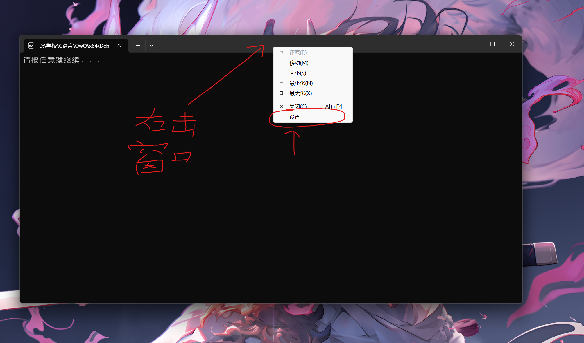 且游戏展示在Windows 控制台主机中(不是Windows终端!!!)(不然显示会错误)