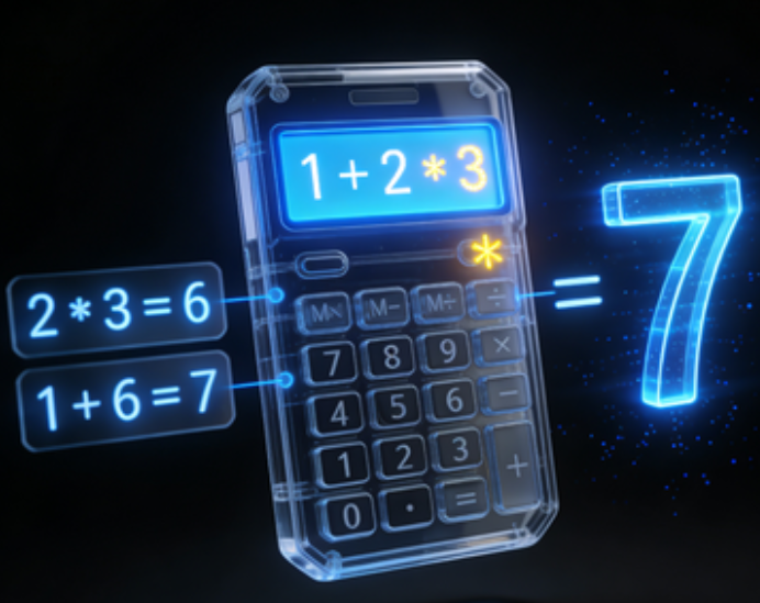 "1+2*3" → ["1","+","2","*","3"] → 语法树 → 遍历计算 → 7