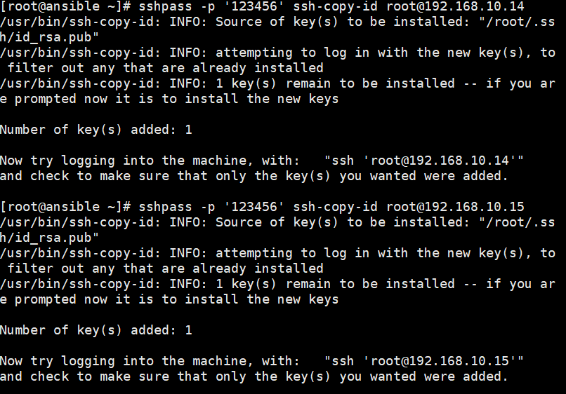 sshpass -p '123456' ssh-copy-id root@192.168.10.14