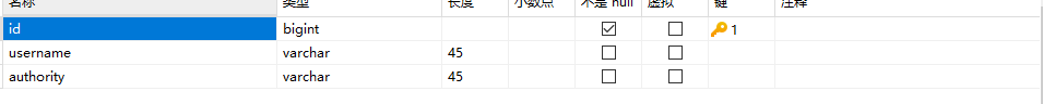 3、如果使用jdbc数据库用户认证 则需要新建数据表(用户表users和权限表authorities),