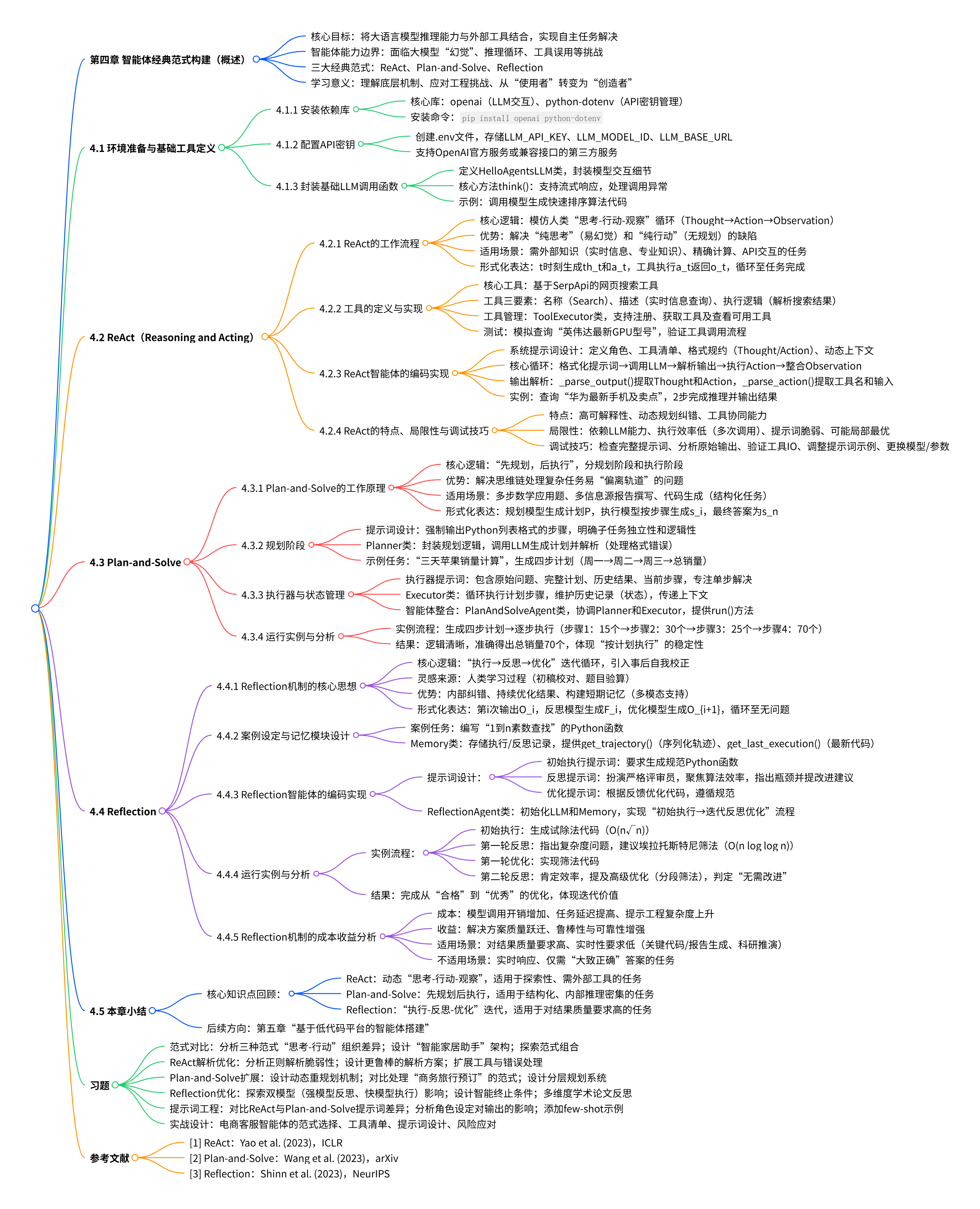 - 在4.4.3节的 Reflection 提示词中,我们使用了"你是一位极其严格的代码评审专家"这样的角色设定。尝试修改这个角色设定(如改为"你是一位注重代码可读性的开源项目维护者"),观察输出结果的变化,并总结角色设定对智能体行为的影响。