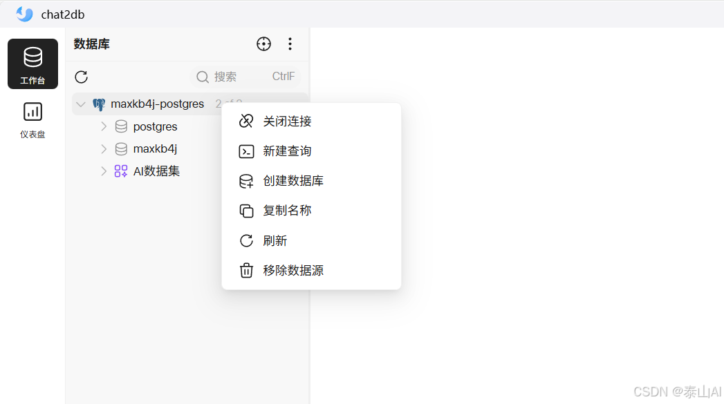 postgres数据库可能导致 Flyway 初始化失败。请进入数据库管理界面,手动创建一个名为maxkb4j的新数据库。