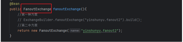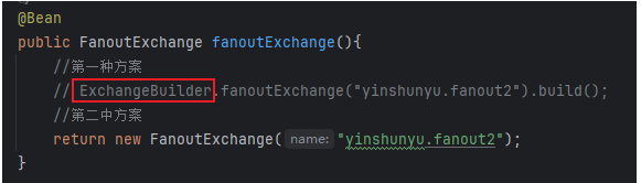 // ExchangeBuilder.fanoutExchange("yinshunyu.fanout2").build();