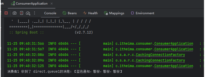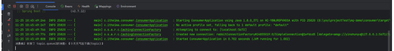System.out.println("消费者1接收到topic.queue1的消息:【" + msg + "】");