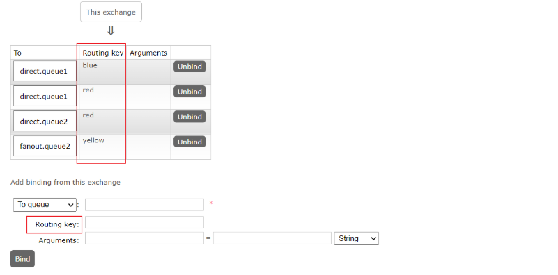 return BindingBuilder.bind(directQueue2).to(directExchange).with("red");