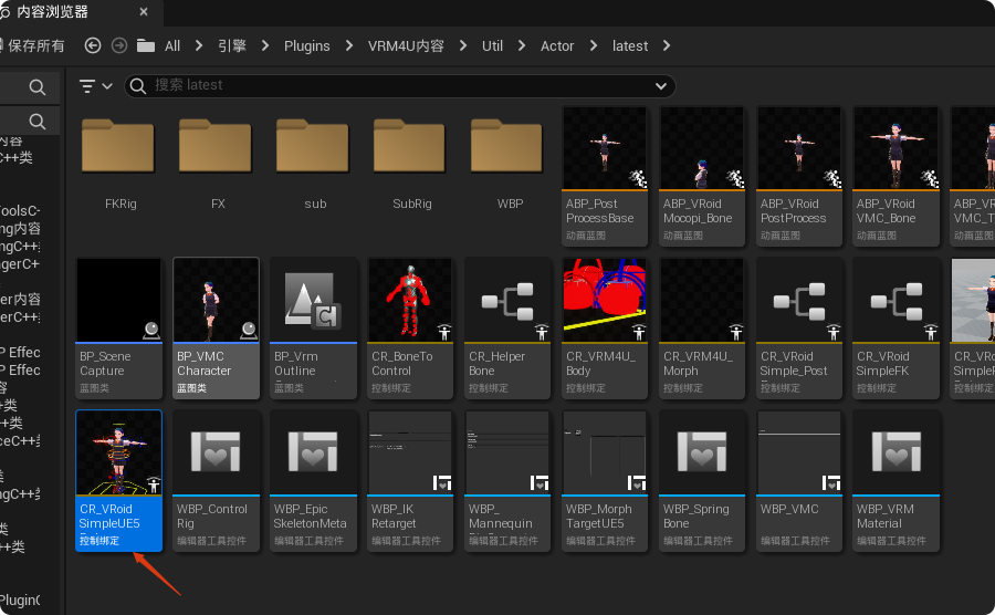 在内容浏览器中找到"CR_VRoidSimpleUE5Body"