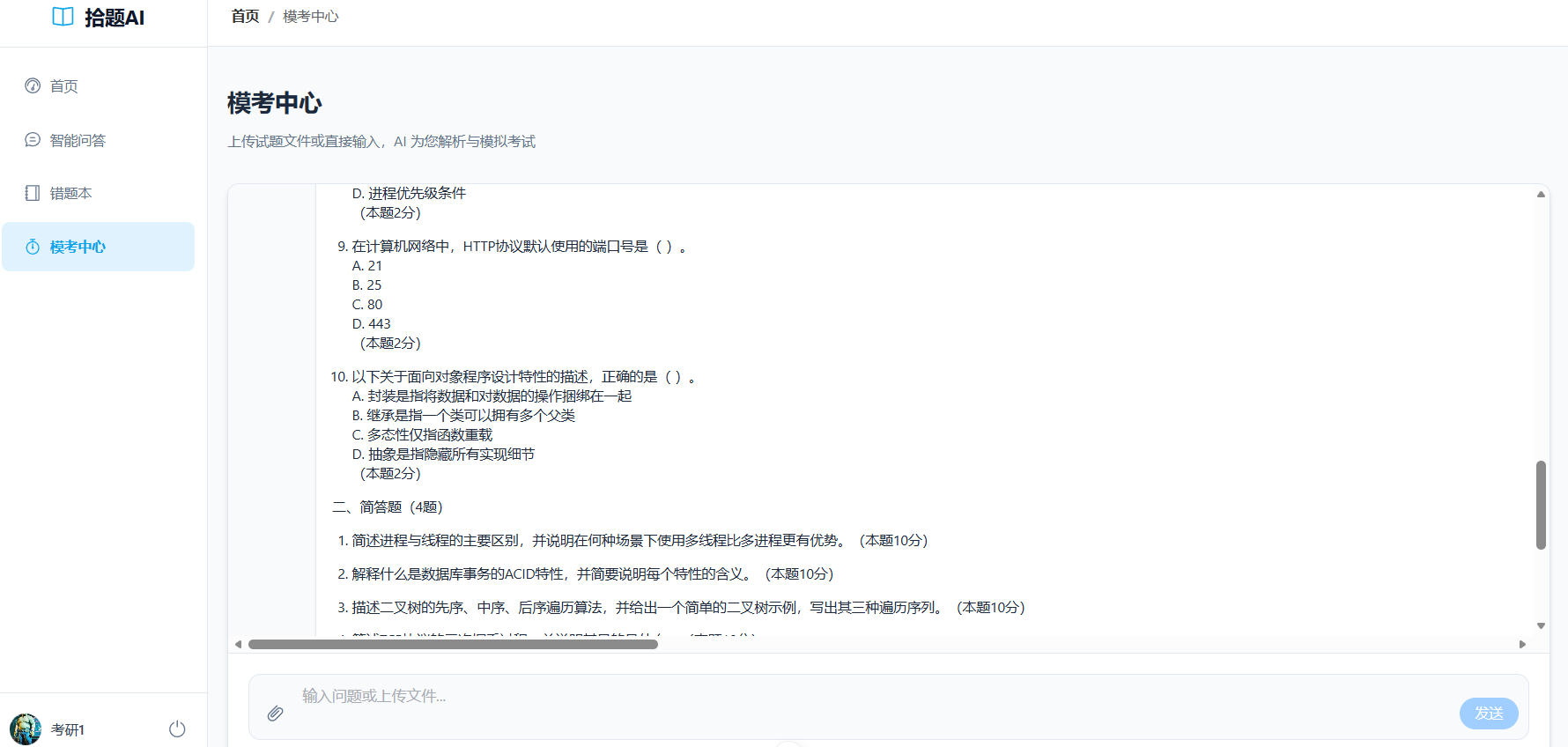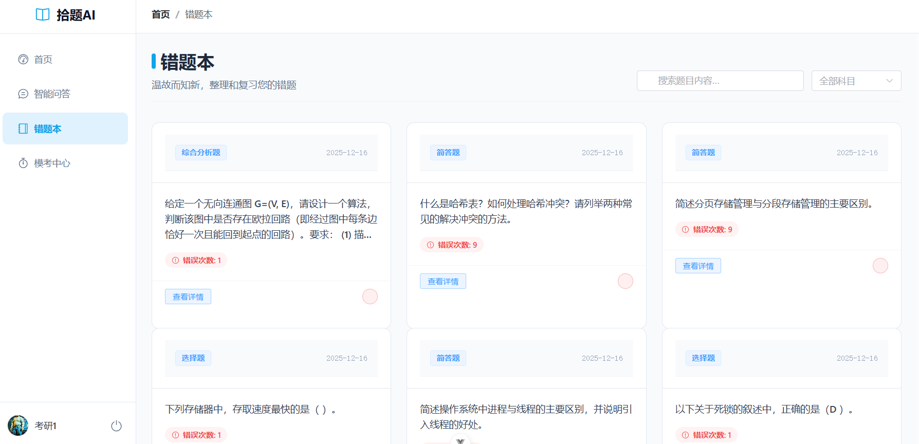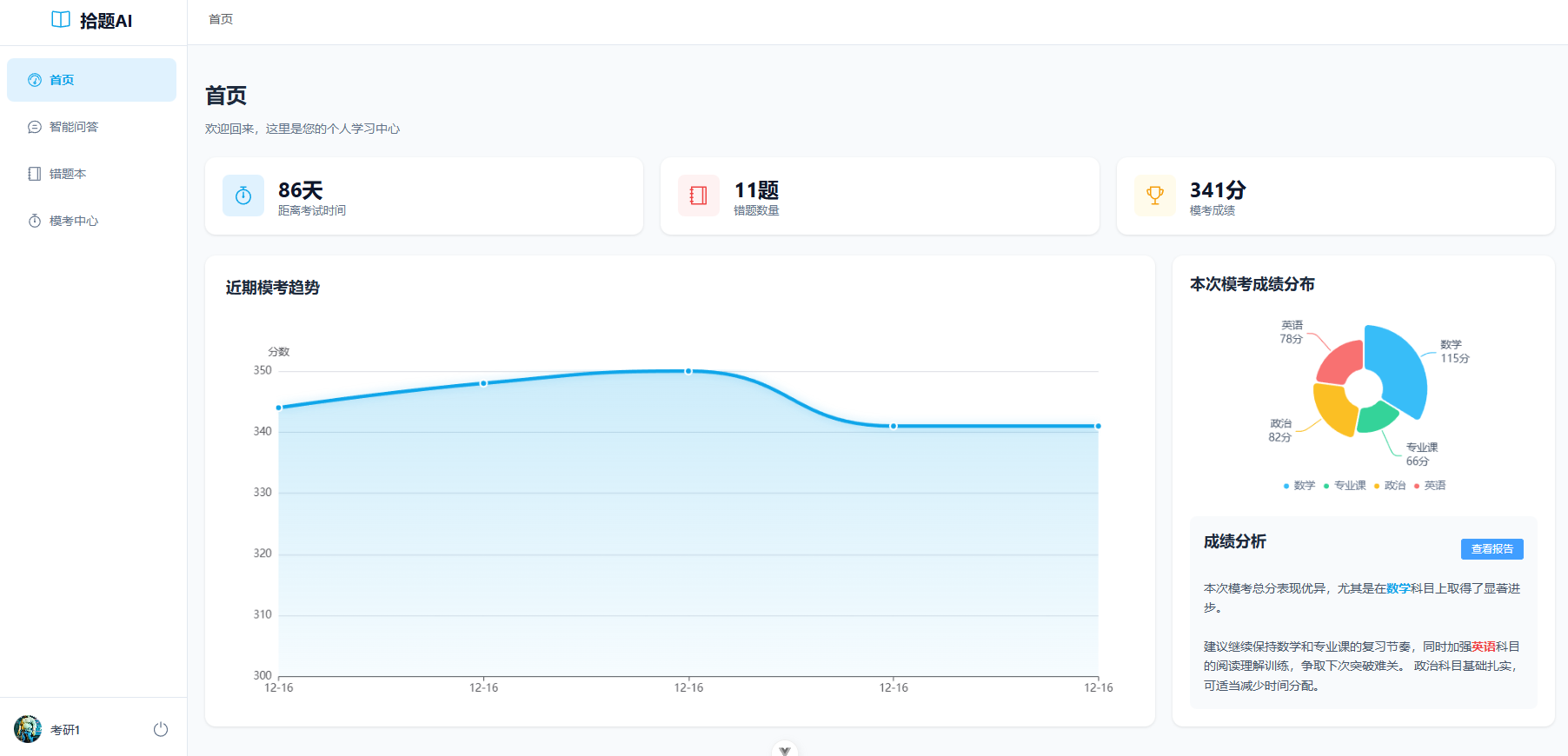 于是,"拾题"应运而生。我希望打造一个 24小时在线的 AI 私人助教,利用大模型的推理能力和多模态理解能力,重塑备考体验。