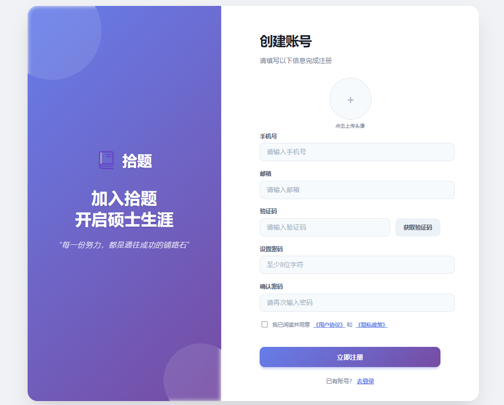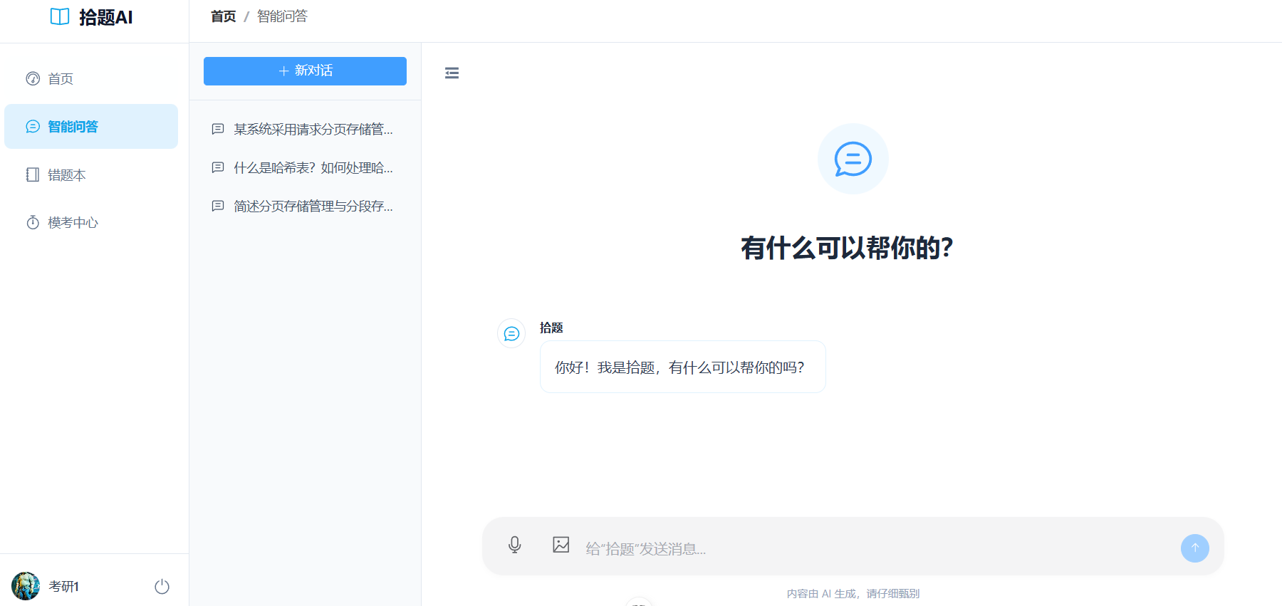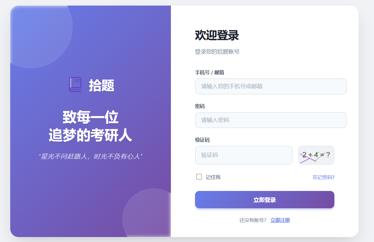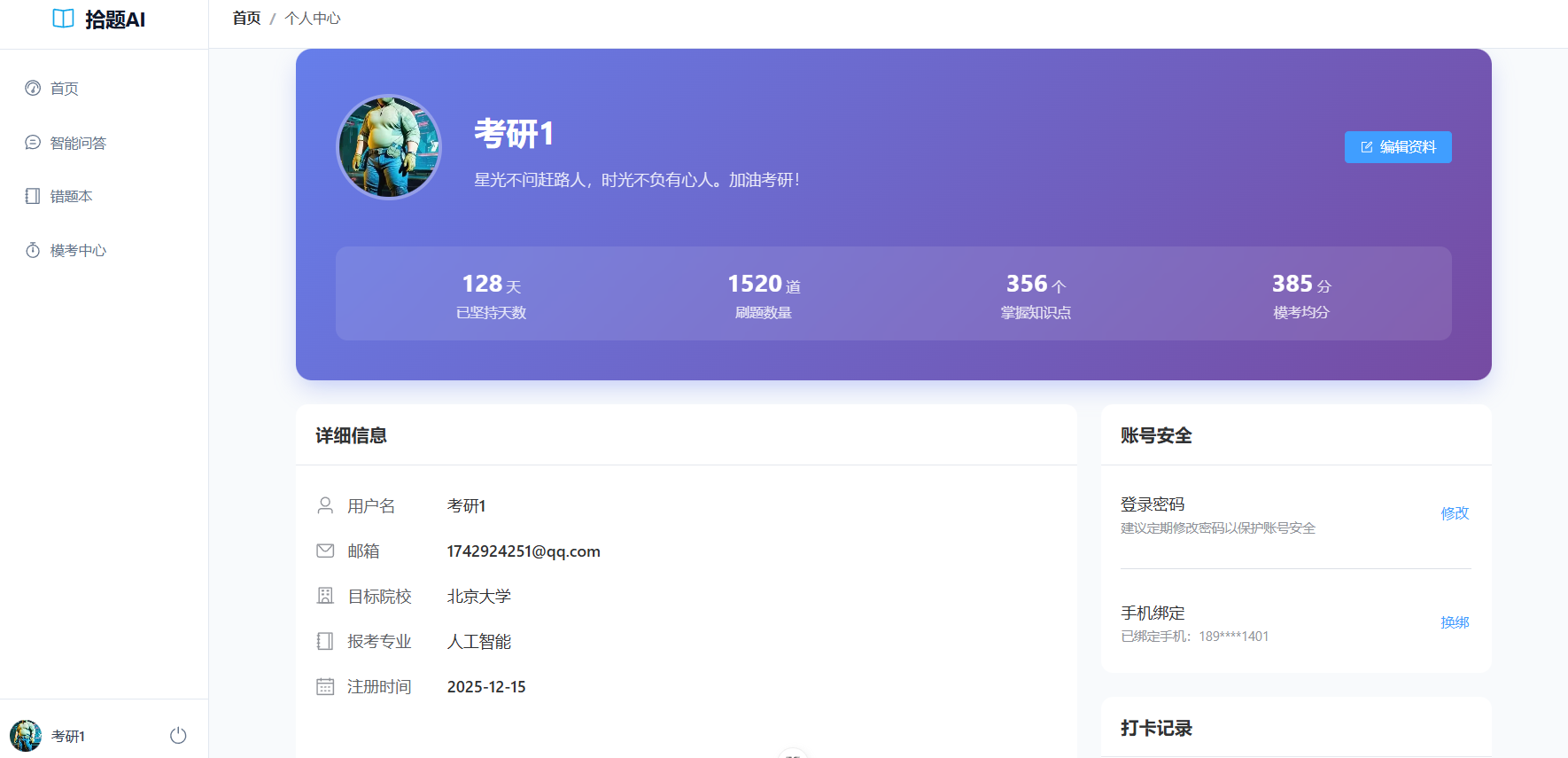 于是,"拾题"应运而生。我希望打造一个 24小时在线的 AI 私人助教,利用大模型的推理能力和多模态理解能力,重塑备考体验。