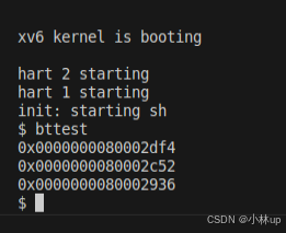 backtrace()function inkernel/printf.c. Insert a call to this function insys_sleep, and then runbttest, which callssys_sleep. Your output should be as follows: