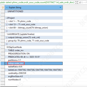 备注 在执行sql SR 会根据已有的物化视图自动改写查询,如果匹配中有可用的物化视图则会
