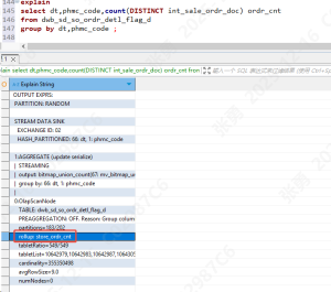 explain 如下: count distinct 也转成了 bitmap 操作