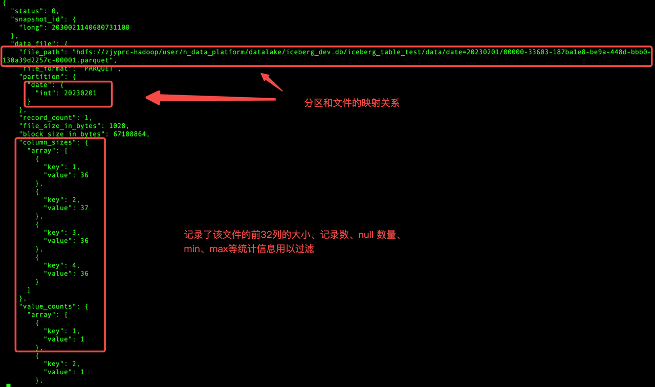 Iceberg 表的分区字段是实际字段,底层文件中也包含该字段,分区字段的位置不固定。
