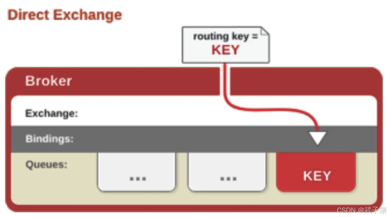 - 特点:根据精确匹配的路由键将消息路由到队列