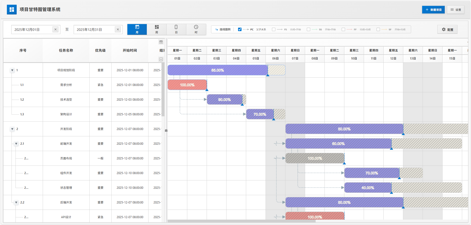 - 🎯 左侧任务列表 + 右侧甘特图时间轴