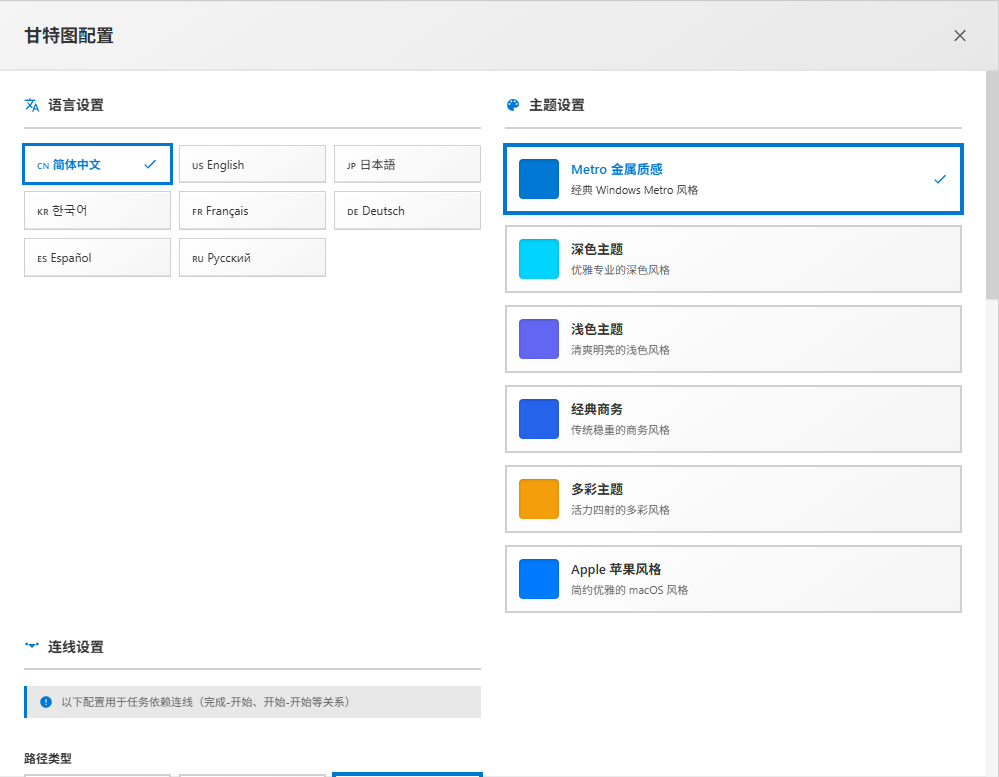 - 交互操作 - 支持任务拖拽、调整大小、父子任务联动