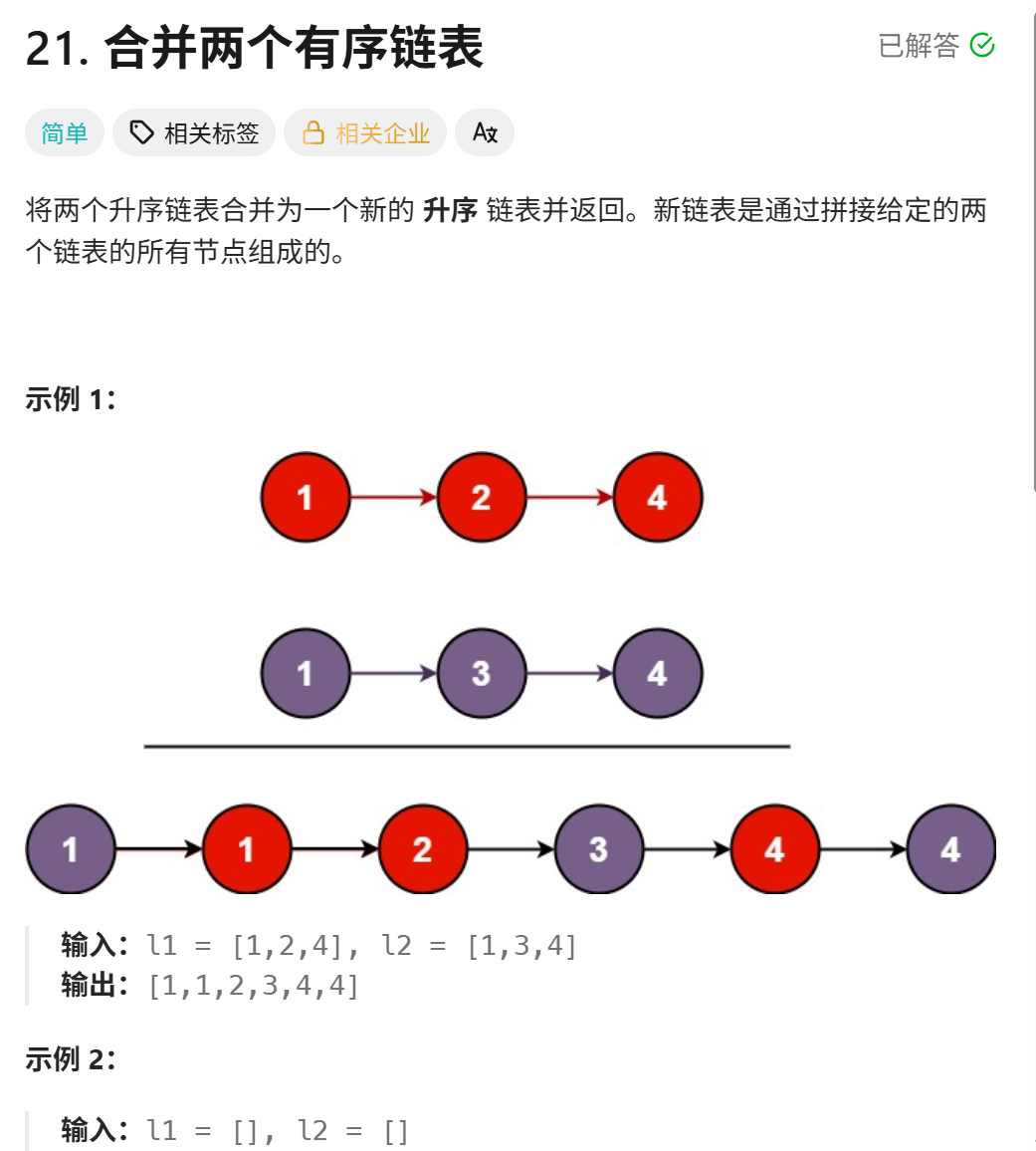 21. 合并两个有序链表