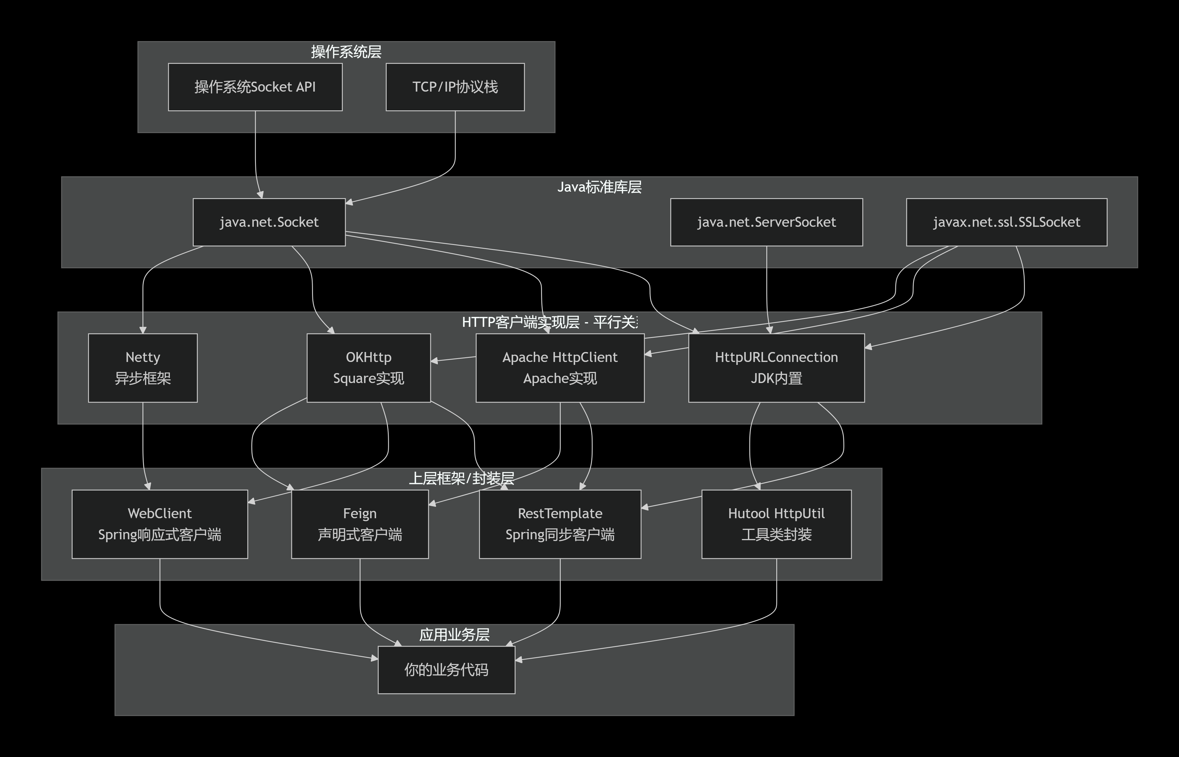 [应用层] → [HTTP客户端] → [HttpURLConnection] → [网络]