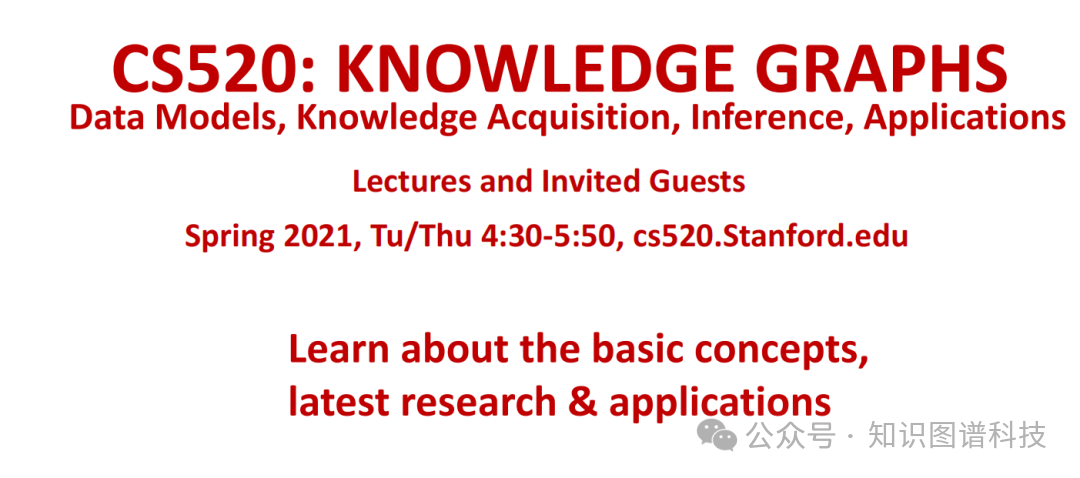 斯坦福大学CS 520课程是一门研究生级别的研讨课程,课程设计巧妙地将人工智能、数据库系统和人机交互三个领域深度融合,致力于创建以知识图谱为中心的集成智能系统。课程于2021年春季通过Zoom在线授课,每周设置两次研讨会,时间为太平洋时区星期二和星期四下午4:30-5:50。