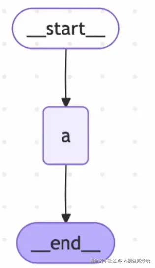 pythonbuilder = StateGraph(State) builder.add_node("a", node_a) builder.add_edge(START, "a") builder.add_edge("a", END) graph = builder.compile()以上代码构建了一个如下的简单图。