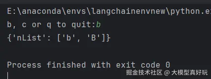 可以看到当用户输入b, 会走到b节点,在b节点中添加字符串'B', 当用户输入c, 会走到c节点,在c节点中添加字符串'C',输入q 则会直接到结束节点,这就是条件边的控制逻辑。完整代码大家可以关注笔者的同名微信公众号 大模型真好玩 ,并私信: LangChain智能体开发免费获取。