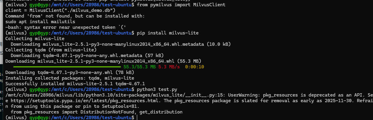 pip install -U pymilvus[milvus-lite]