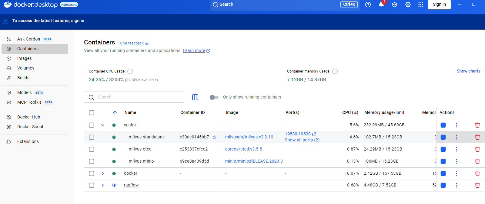[3.2.1.运行 Milvus](#3.2.1.运行 Milvus)