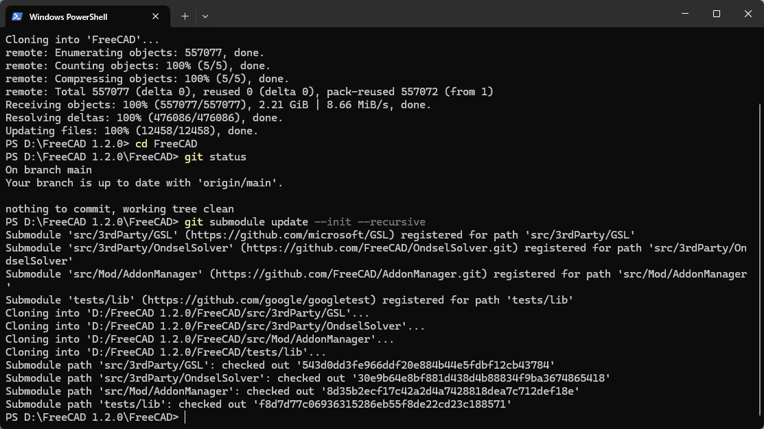 bashgit clone git@github.com:FreeCAD/FreeCAD.git -