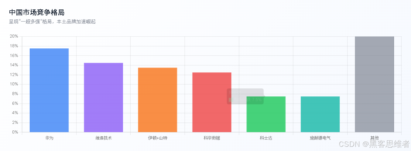 中国 UPS 市场主要厂商份额分布如下:华为(17%-18%)、维谛技术(Vertiv,14%-15%)、伊顿(采用双品牌战略 Eaton+Santak,合计 13%-14%)、科华数据(12%-13%)、科士达(7%-8%)、施耐德电气(2024 年份额下滑至 7%-8%)。值得注意的是,本土品牌凭借性价比优势(同配置价格低 20%-30%)及快速响应服务,正在加速抢占外资份额。