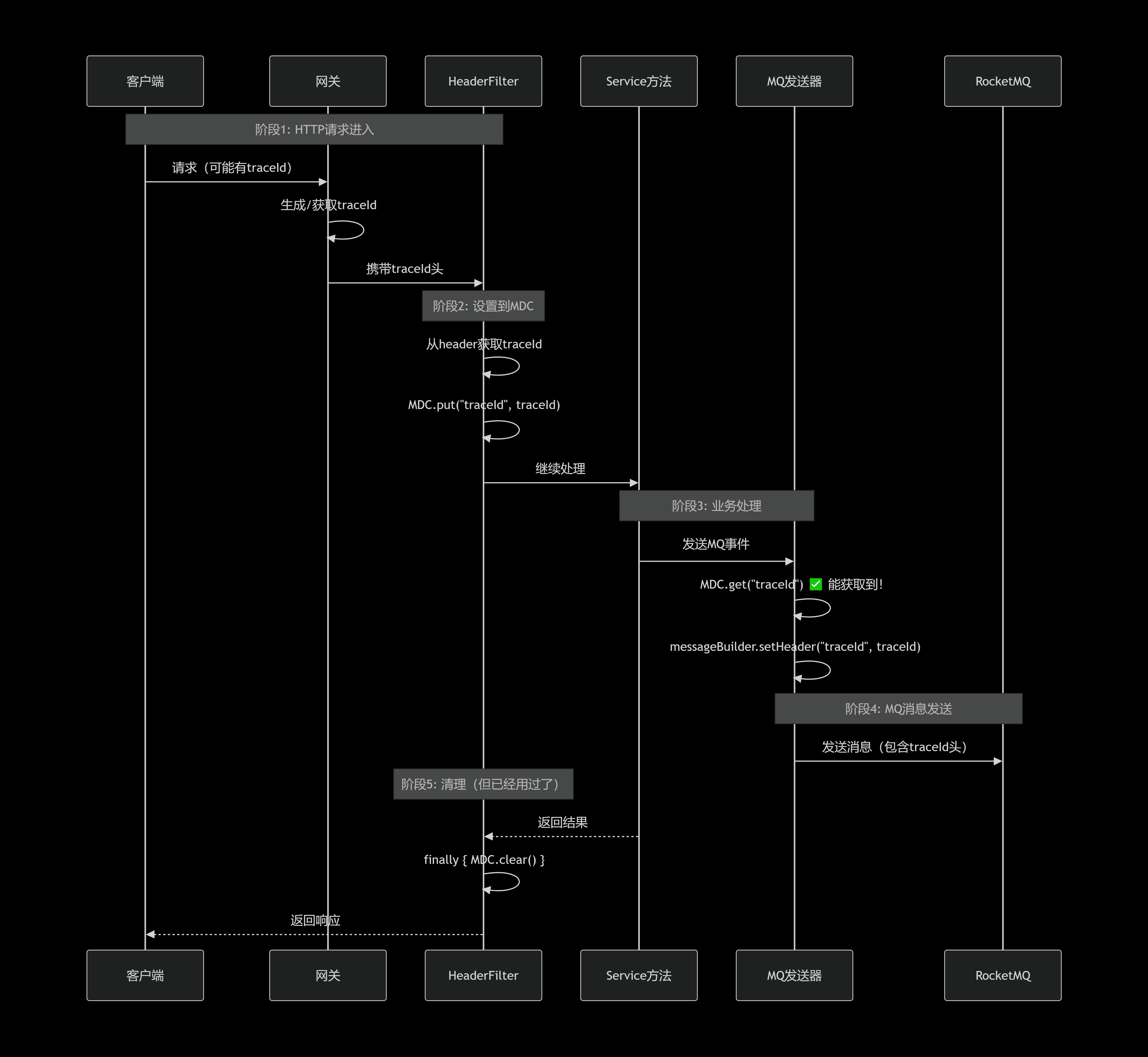 所以你的MQ发送代码能正确获取traceId,这正是分布式追踪系统设计精妙之处:通过线程上下文在同步处理链路上自动传递追踪信息。