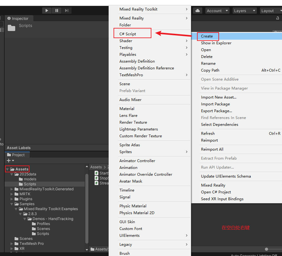 在Asstes 文件夹或其子目录下的文件夹里,新建C#脚本文件