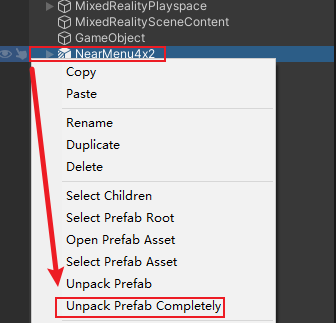 选中按钮,右键Unpack Prefab Completely