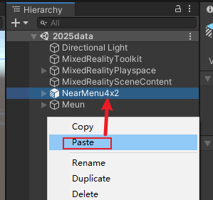 2)在Hierarchy 选项窗口下,右键Paste 进行粘贴即可