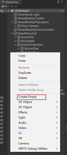 先新建项目,配置MRTK,激活XR功能,创建和设置场景