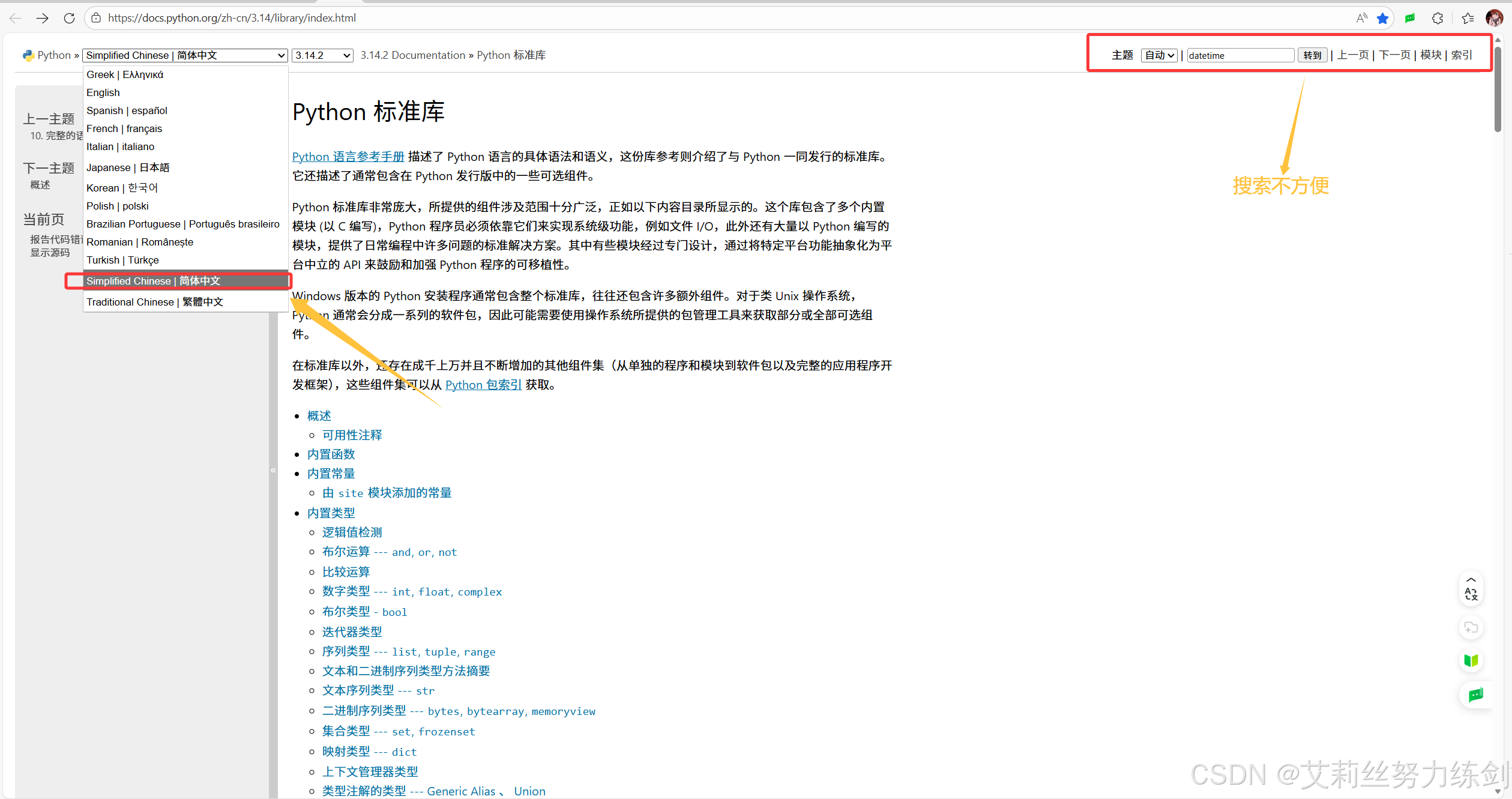 Python 自身内置了非常丰富的库,在Python官方文档上可以看到这些库的内容:Python 官方文档