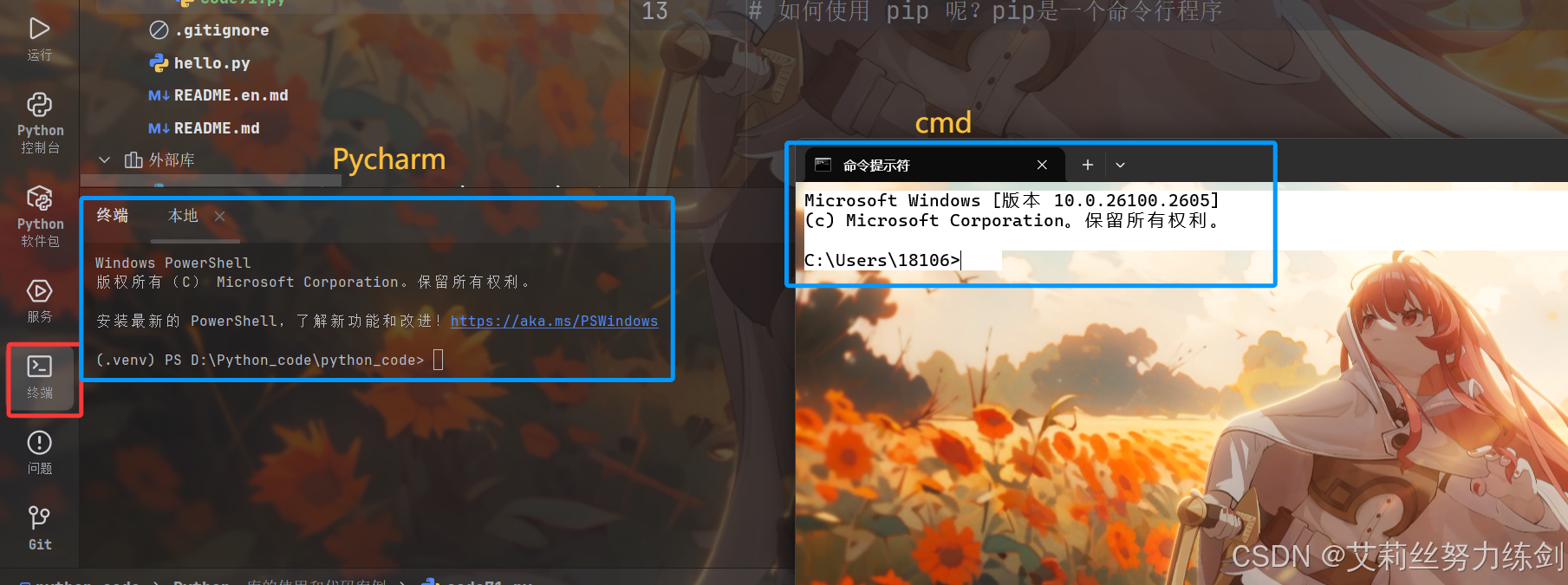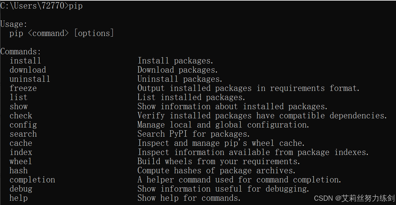 像上面这样,说明pip已经安装了,可以使用。