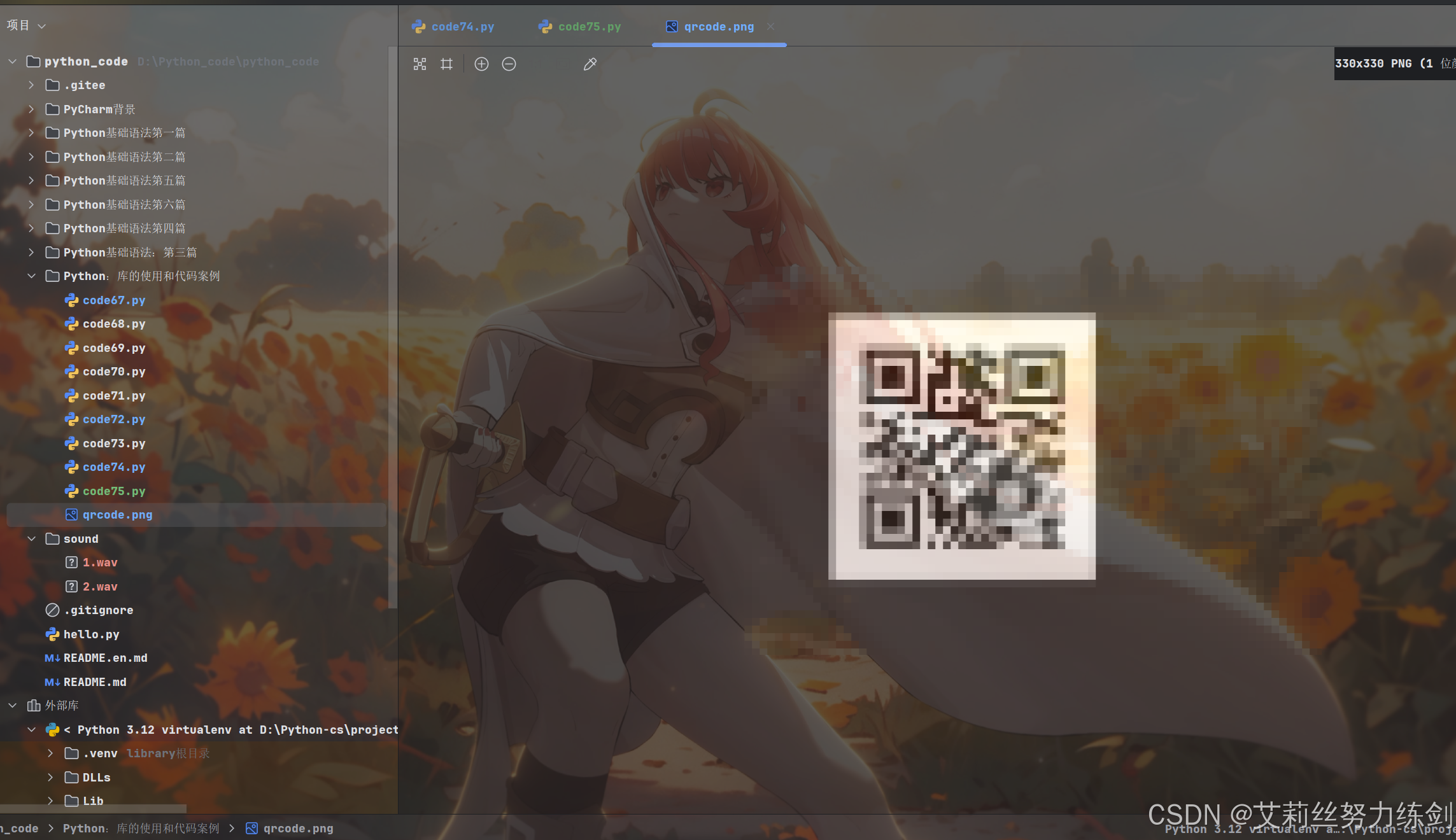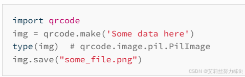 img = qrcode.make('艾莉丝努力练剑')