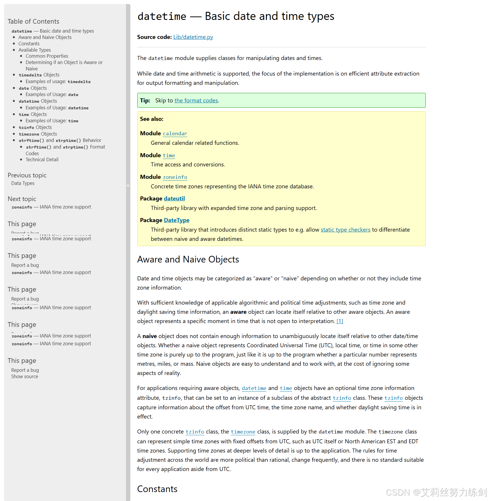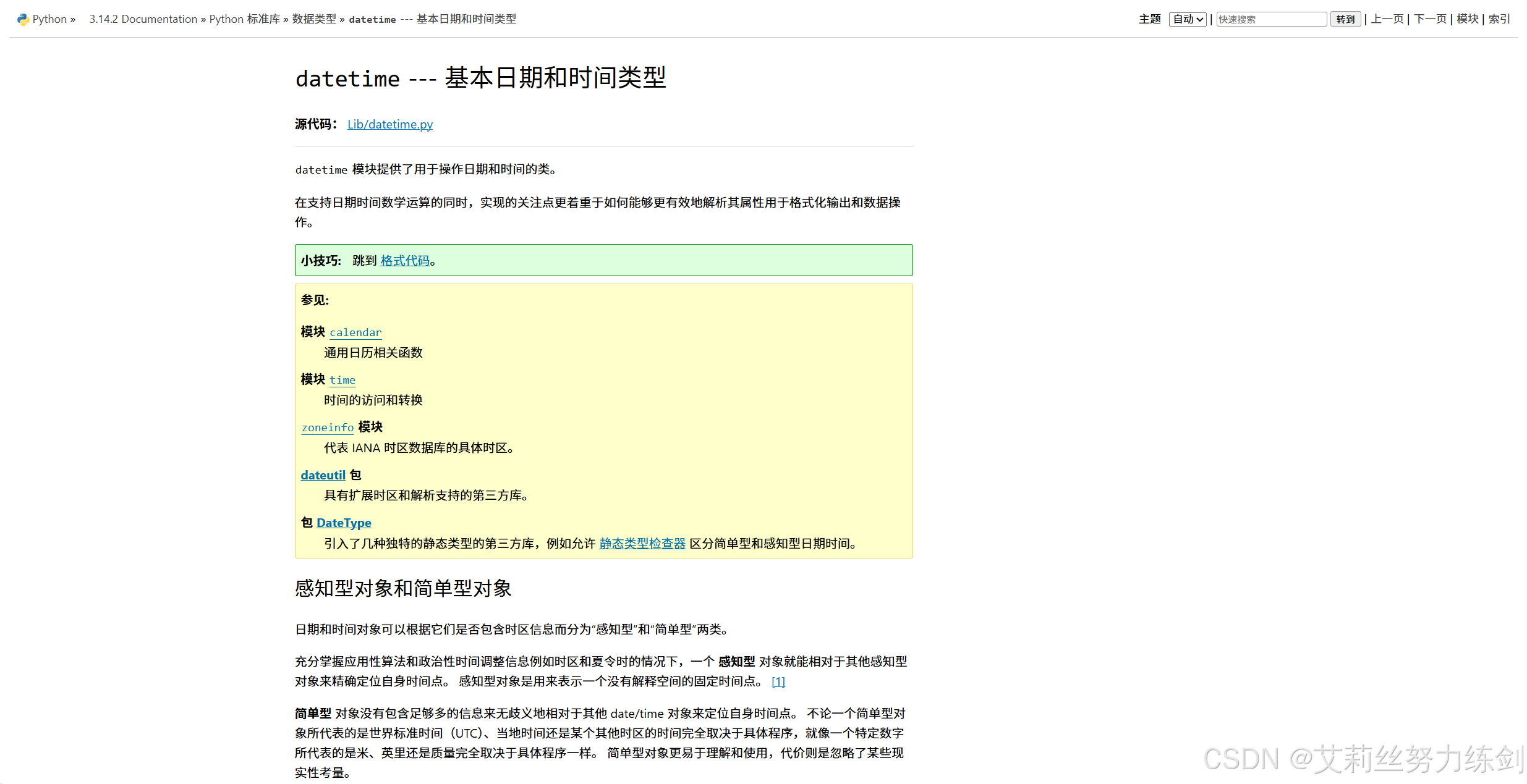 import语句导入标准库的datetime模块。 - 使用
