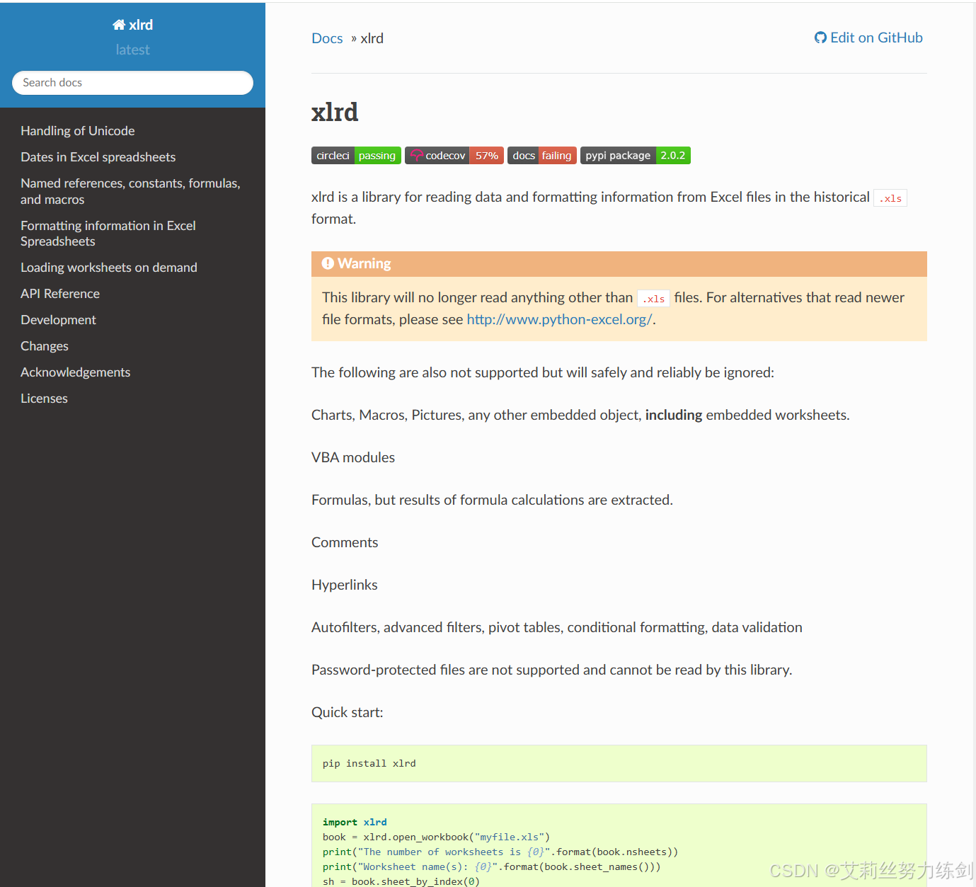 此处以xlrd为例,演示excel的基本操作。