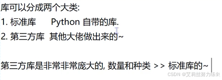 标准库:Python自带的库.只要安装了Python就可以直接使用。