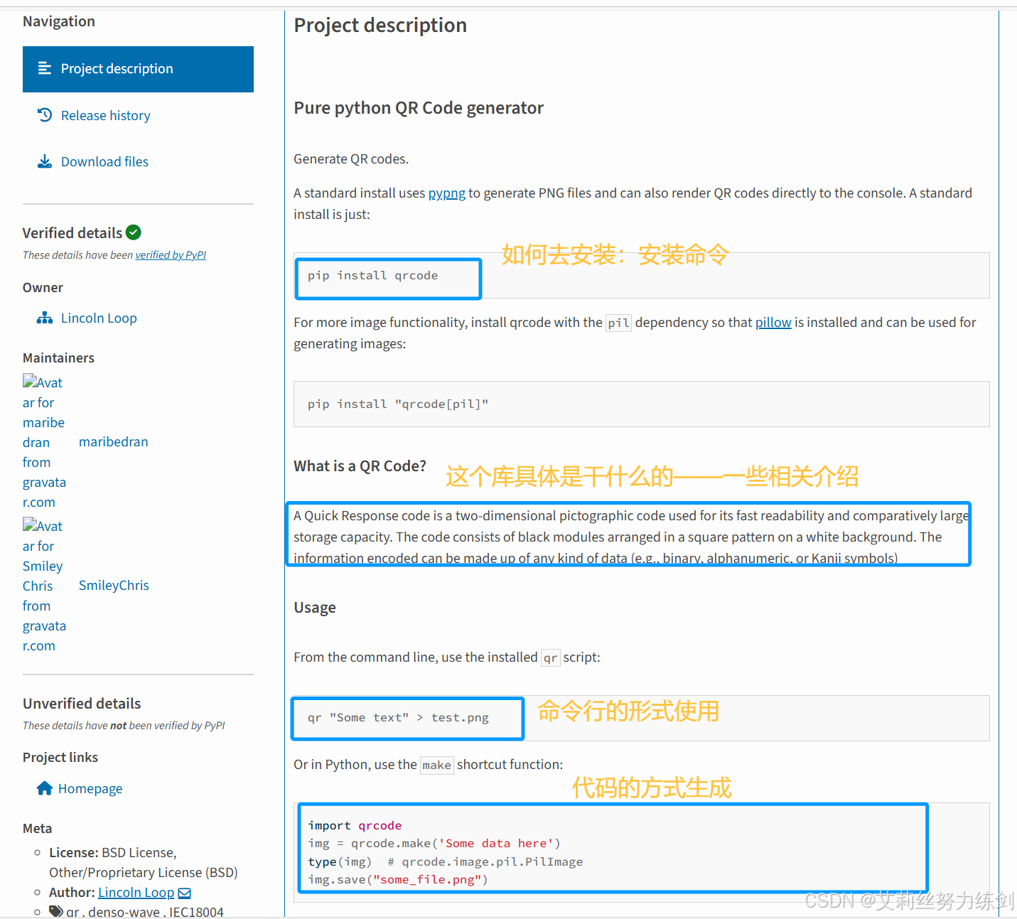 文档开头描述了如何安装qrcode。