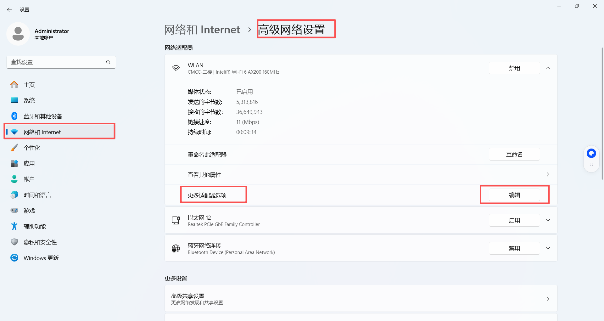 修改网络适配器配置
