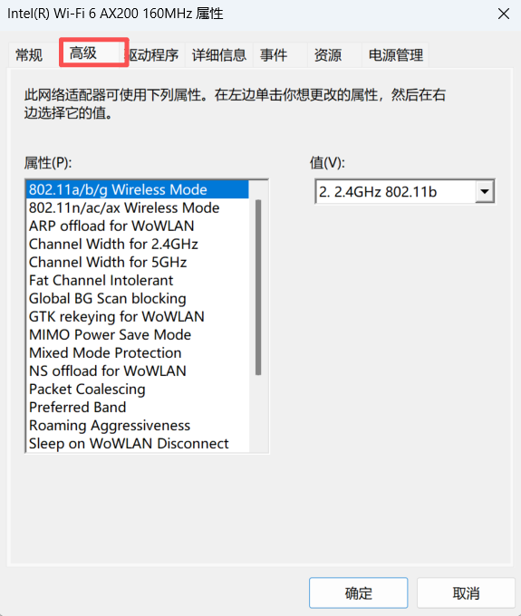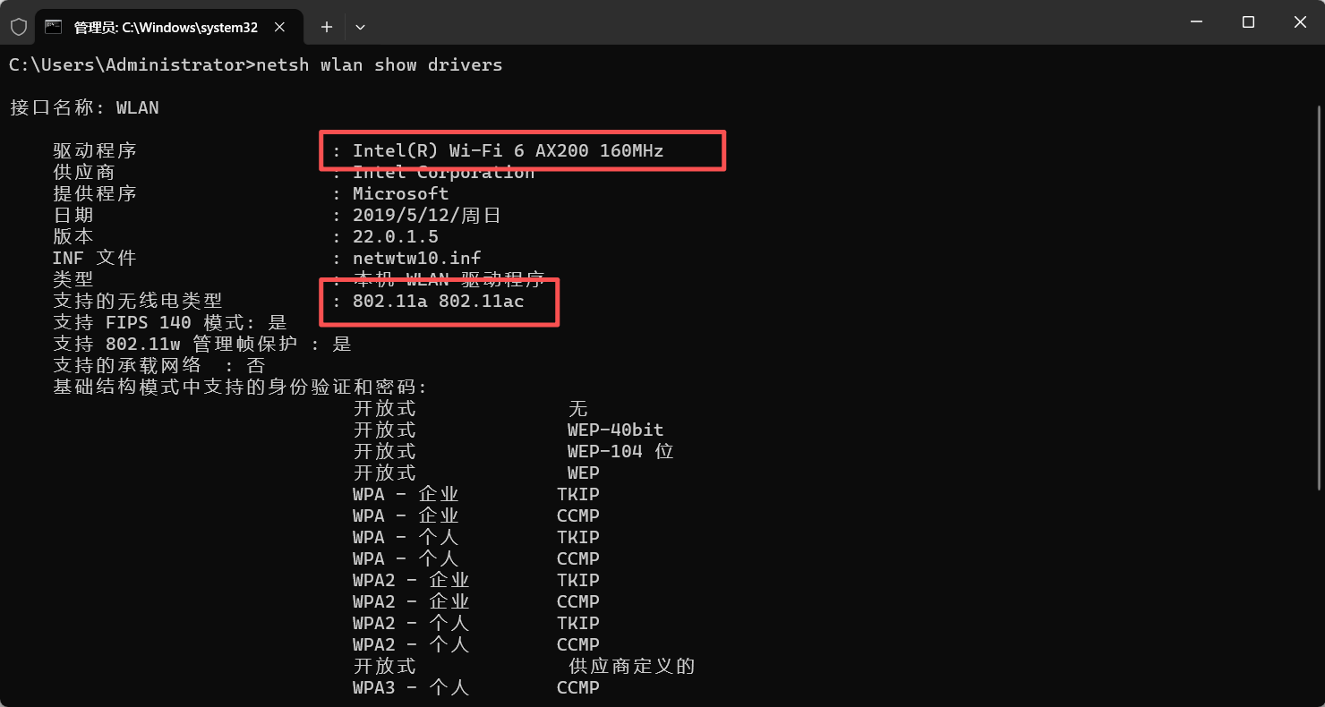 驱动程序 : Intel(R) Wi-Fi 6 AX200 160MHz