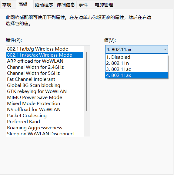 驱动名字上面的信息 wifi6 AX200 160MHz