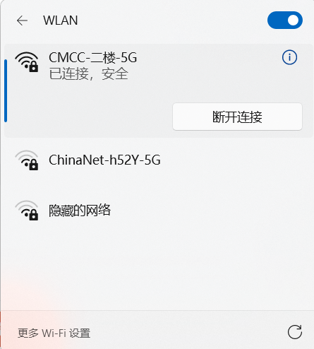 可以看到已经不会显示5G以外的wifi了,需要连接2.4G自行设置回去