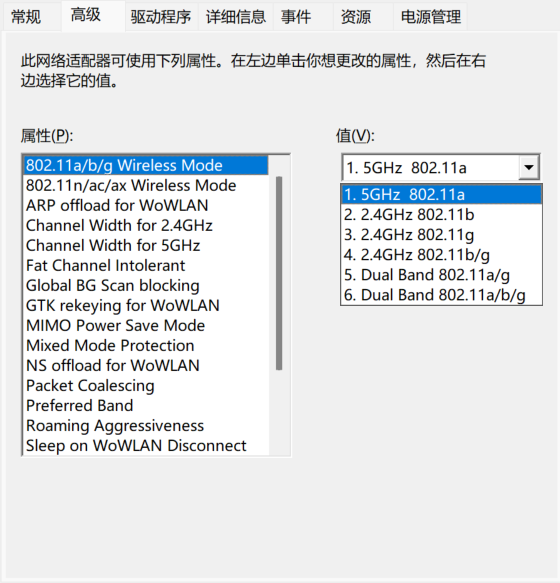那个支持的无线电就是这里设置的,如果你连802.11....的选项都没有,就不用看了