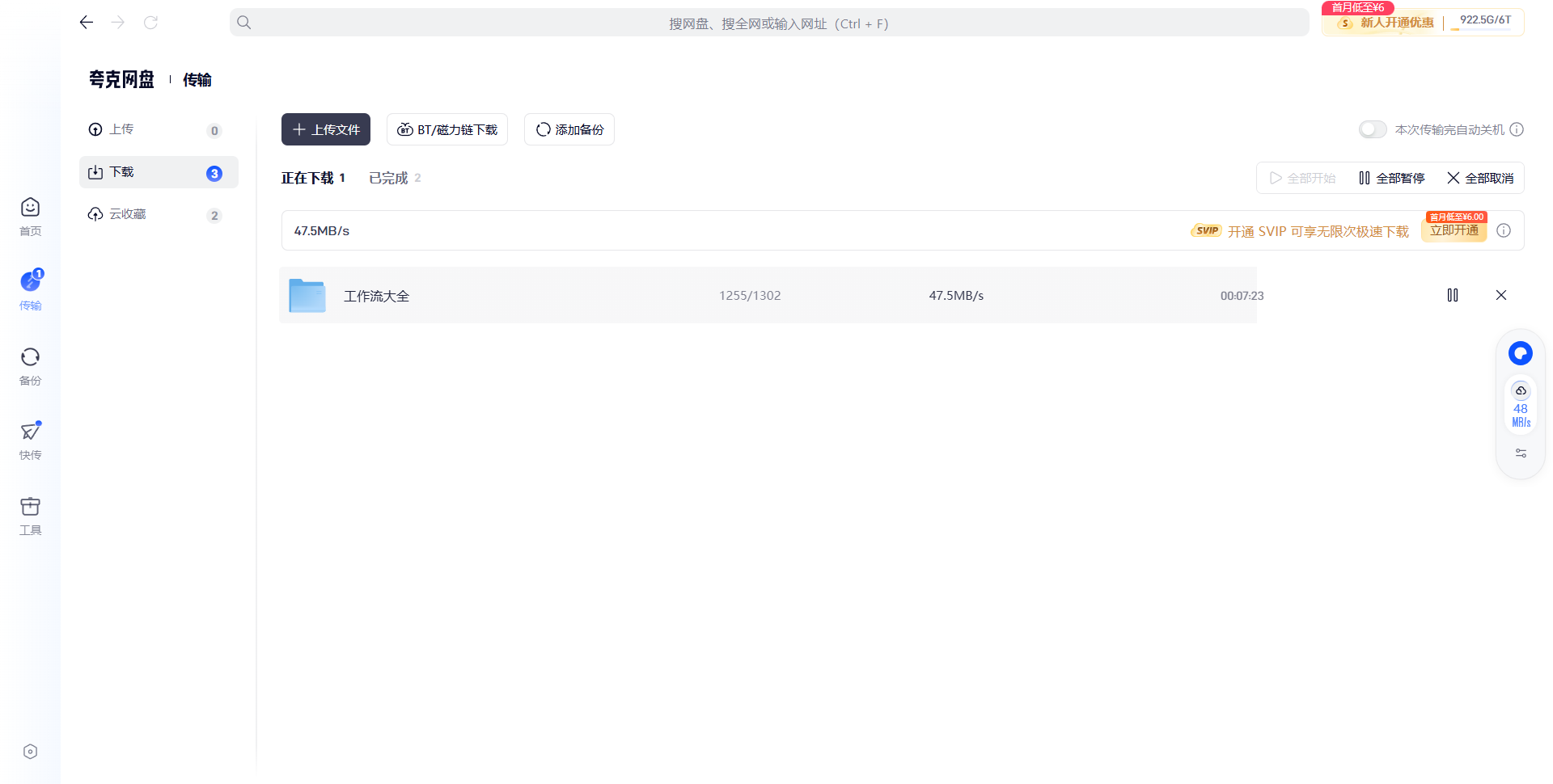nice,正常了,速度50M/s(我有夸克会员,如果没有被限速用别的工具测试)